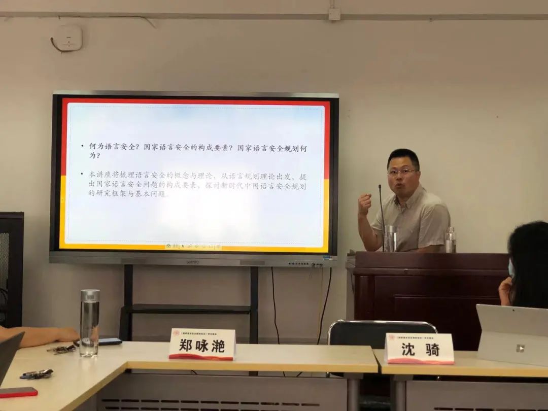 讲座中,沈骑从语言安全和规划理论出发,以通俗易懂的例子为大家详细解读了国家语言安全问题的构成要素,与师生们一起探讨了新时代中国语言安全规划的研究框架和基本议题,使大家对国家语言安全有了更全面、深入的了解。