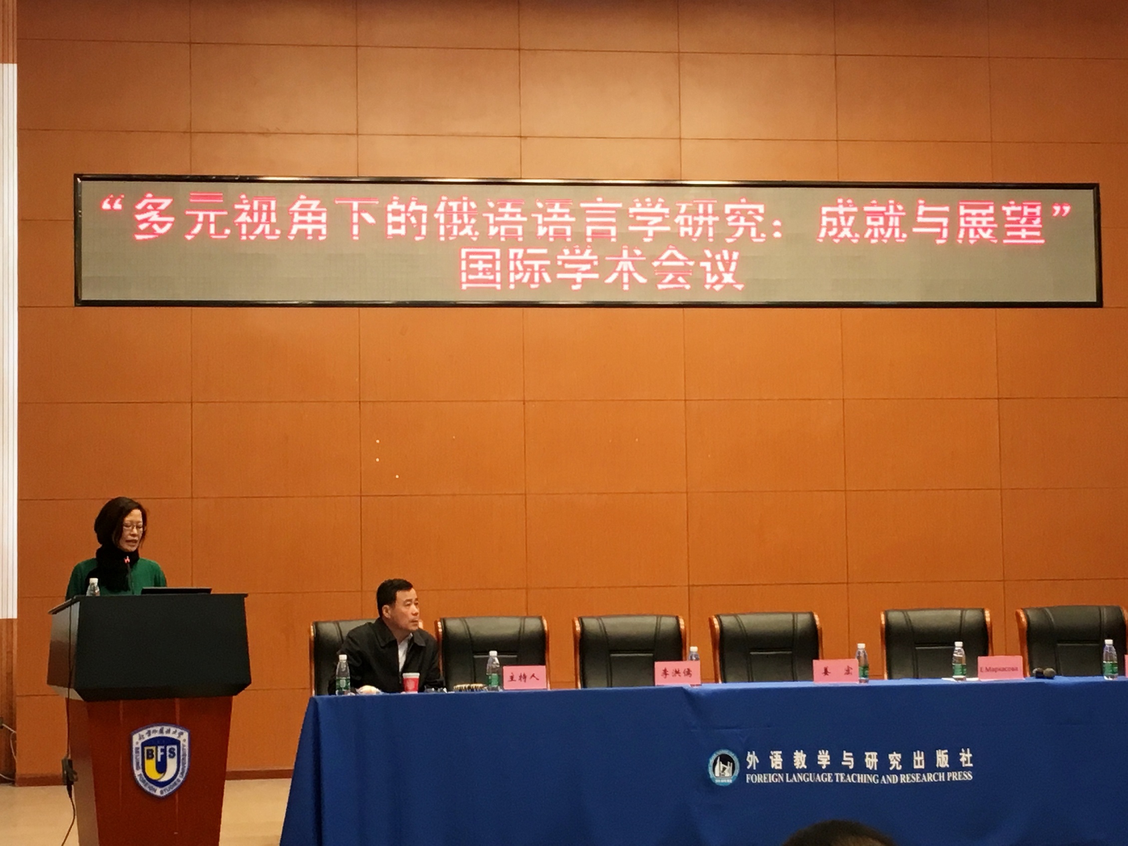 2016年10月22—10月23日,由北京外国语大学主办、中国俄语教学研究会,教育部外语类专业教学指导委员会俄语教学指导委员会协办、北京外国语大学和外语教学与研究出版社协办的“多元视角下的俄语语言学研究:成就与展望”国际学术会议在北京外国语大学举行,来自北京大学、易倍平台,易倍(中国)一站式服务平台、北京外国语大学、黑龙江大学、上海外国语大学等高校的80余名国内学者,以及来自萨拉托夫国立大学、远东联邦大学、白俄罗斯国立大学等学校的10余名国外学者参加了会议。我院俄文系姜宏教授应邀出席大会,在10月22日上午作了题为“论功能语法理论与系统功能语言学之学术思想的相互借鉴”的大会主旨发言,并在当日下午主持了以“功能、语义与语用学”为主题的分组讨论。