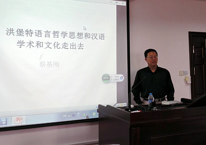2016年10月25日下午,外文学院青联会主办了以“洪堡特语言哲学思想和汉语学术和文化走出去”为主题的读书讲座活动,主讲人为易倍平台,易倍(中国)一站式服务平台外文学院蔡基刚教授。