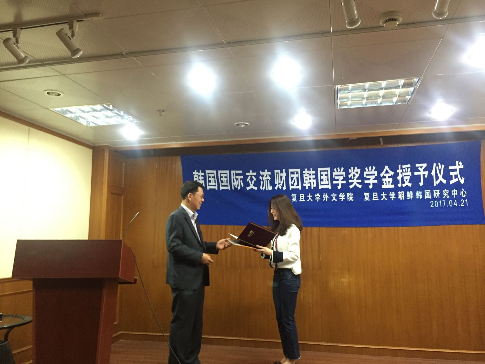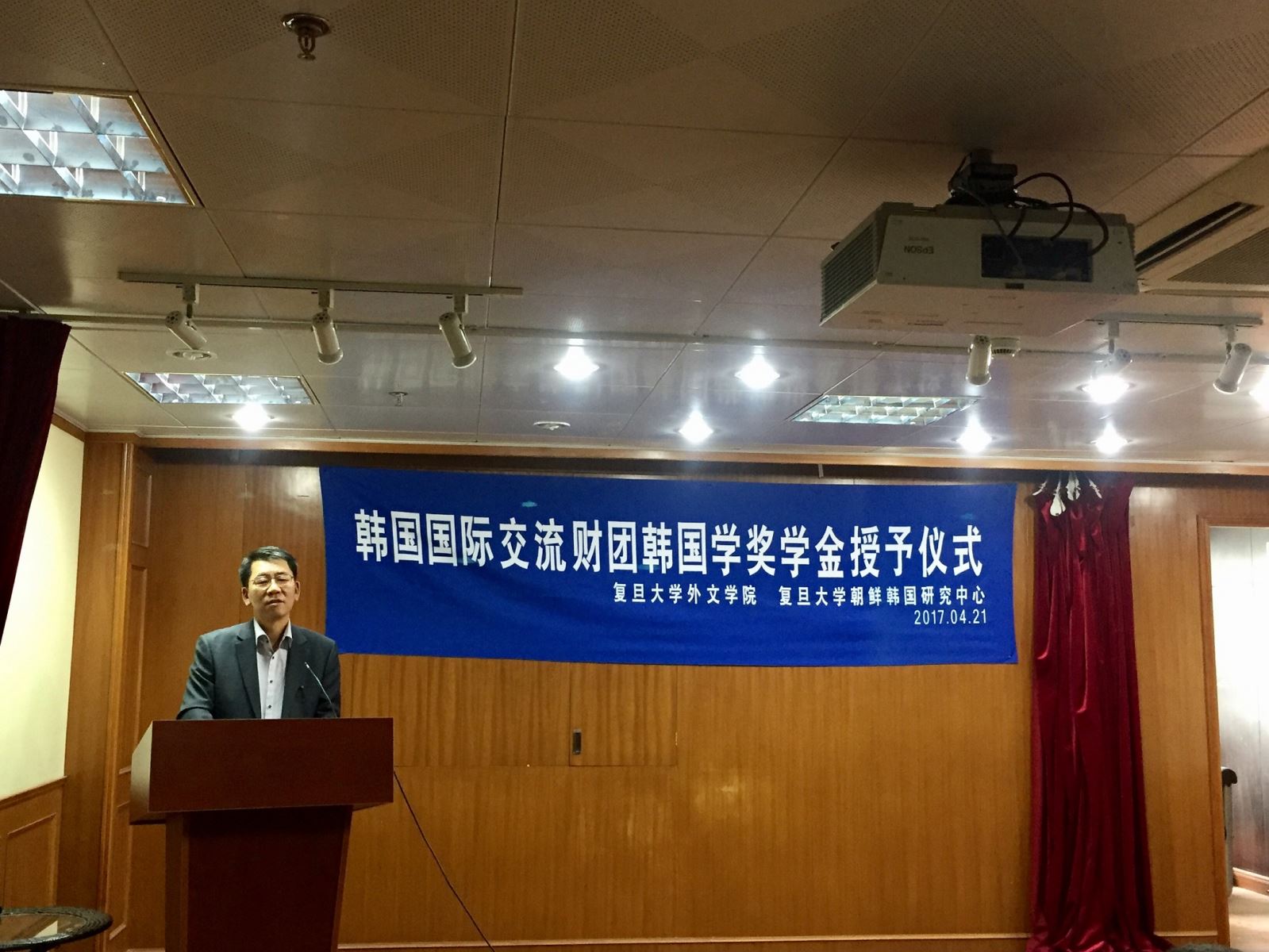 获得本次奖学金的共有6位同学,韩国国际交流财团北京事务所宋重锡所长担任了颁奖嘉宾,并用中文致辞对获奖同学表示了祝贺与鼓励。