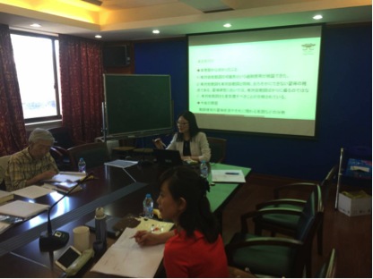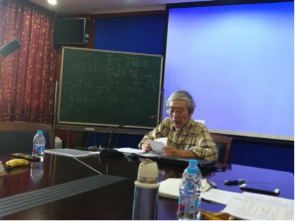 在青年学者们的发言过后,利用此次机会松本泰丈老师为大家做了精彩的演讲,题目为《日本語動詞の意味記述にあたって》。演讲中,不仅引用《例解国语辞典》、《学研国语大辞典》、《小学馆日本语新辞典》等一般辞典的条目,也引用了《日本语基本动词用法辞典》等专门辞典,通过分析这近十部辞典各自体例的不同,强调了用例的重要性,此外还结合了韩语动词的研究情况,为大家打开了思路。通过介绍动词的意义及用法,松本老师由点及面,指出了在语言学研究过程中需要注意的诸多问题,特别是在研究方法上给出了重要指导,给在座各位带来了很多启示。
