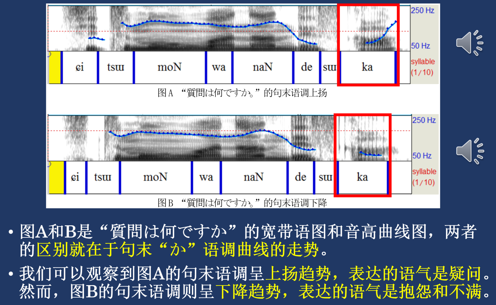 本次报告中,刘佳琦老师首先介绍了几种日语语音的创新教学辅助模式,如影子跟读(Shadowing)、在线日语语音字典(OJAD)、慕课edX平台教学等。她同时也指出,日语语音指导缺乏系统性,仍局限于“发现问题,及时纠正”。因此,我们需要借助语音可视化的手段,充分发挥听觉信息与视觉信息的交互作用。教学者和学习者从视觉上观察和比较语音信息,从而培养学习者的发音自我监控和反馈能力。