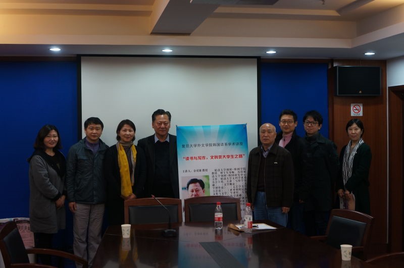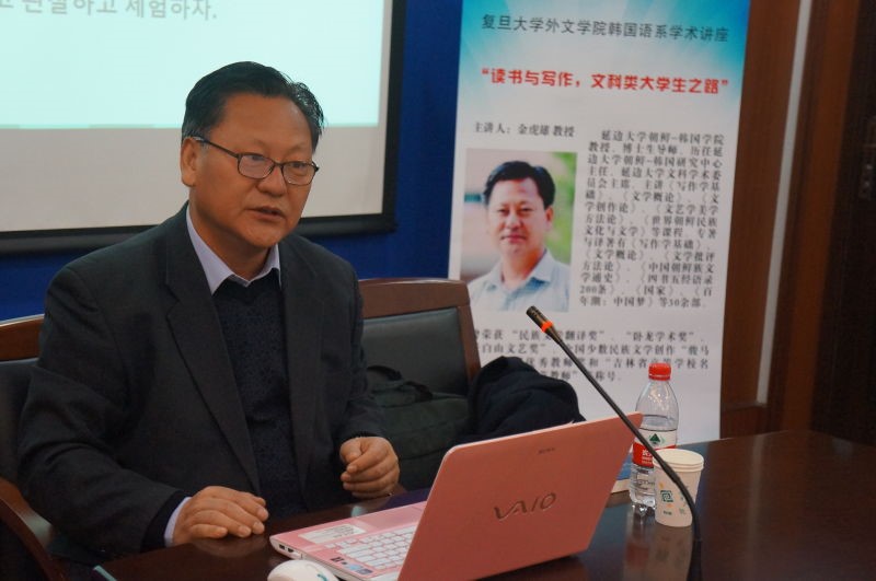 金虎雄教授以“读书与写作,文科类大学生之路”为主题开展讲座。讲座由易倍平台,易倍(中国)一站式服务平台韩文系主任黄贤玉教授主持。