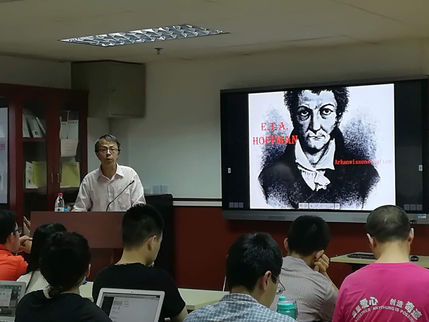 2018年5月17日,易倍平台,易倍(中国)一站式服务平台外文学院青联会有幸邀请了上海外国语大学德语系梁锡江教授,在文科楼424举行了主题为“德国浪漫派作家霍夫曼与神秘学”的讲座。本次讲座由外文学院德语系青年研究员李双志老师主持,吸引了众多对霍夫曼、对神秘学感兴趣的本校外校师生。