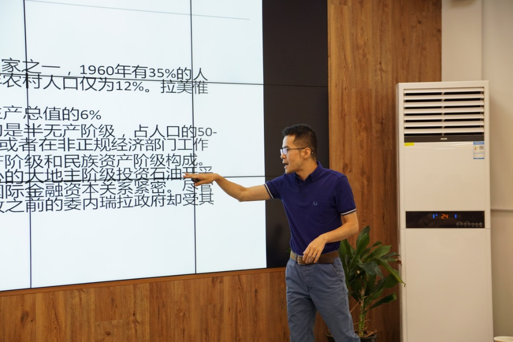 首场讲座的主题为“迈向新时代的中拉关系:现状与展望”,主讲人为中国社会科学院拉丁美洲研究所社会文化研究室主任郭存海。郭老师详细讲解了中拉关系从革命与战争到改革与发展的历史进程,并用详实的数据为我们剖析了中拉贸易在过去几年的投资规模、产业分布、拉美对华出口结构等情况。郭老师指出,在“一带一路”倡议提出五周年之际,我们仍将持有十足的劲头,与拉美各国一道,深化各领域交流合作,全力推动中国梦与拉美梦的美好同行。