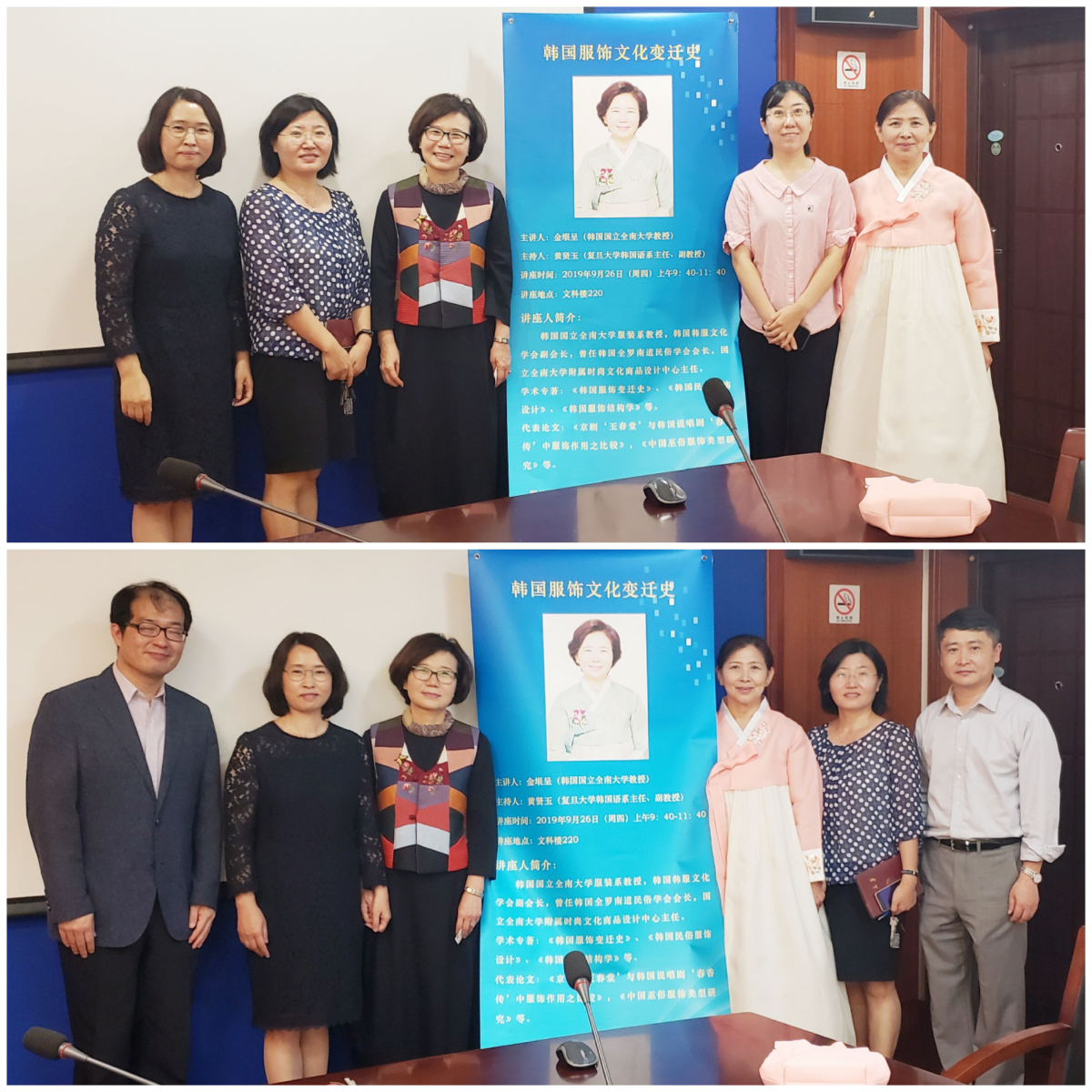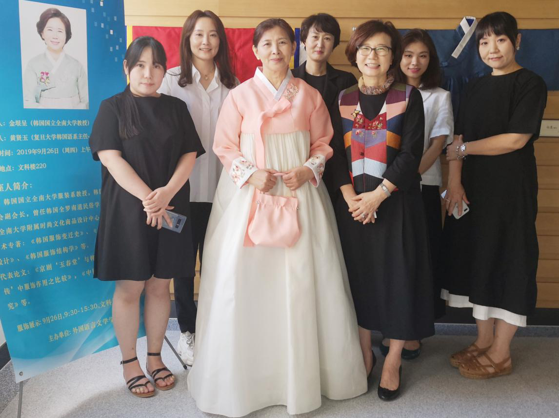2019年9月26日,韩国国立全南大学教授金垠呈应邀前来易倍平台,易倍(中国)一站式服务平台外文学院做了主题为“韩国服饰文化变迁史”的讲座,随行的五名博士生准备了精美的韩国服饰展,展示了韩国各历史时期的服装,从而让学生们更加近距离的接触了解韩服、体验韩国文化。