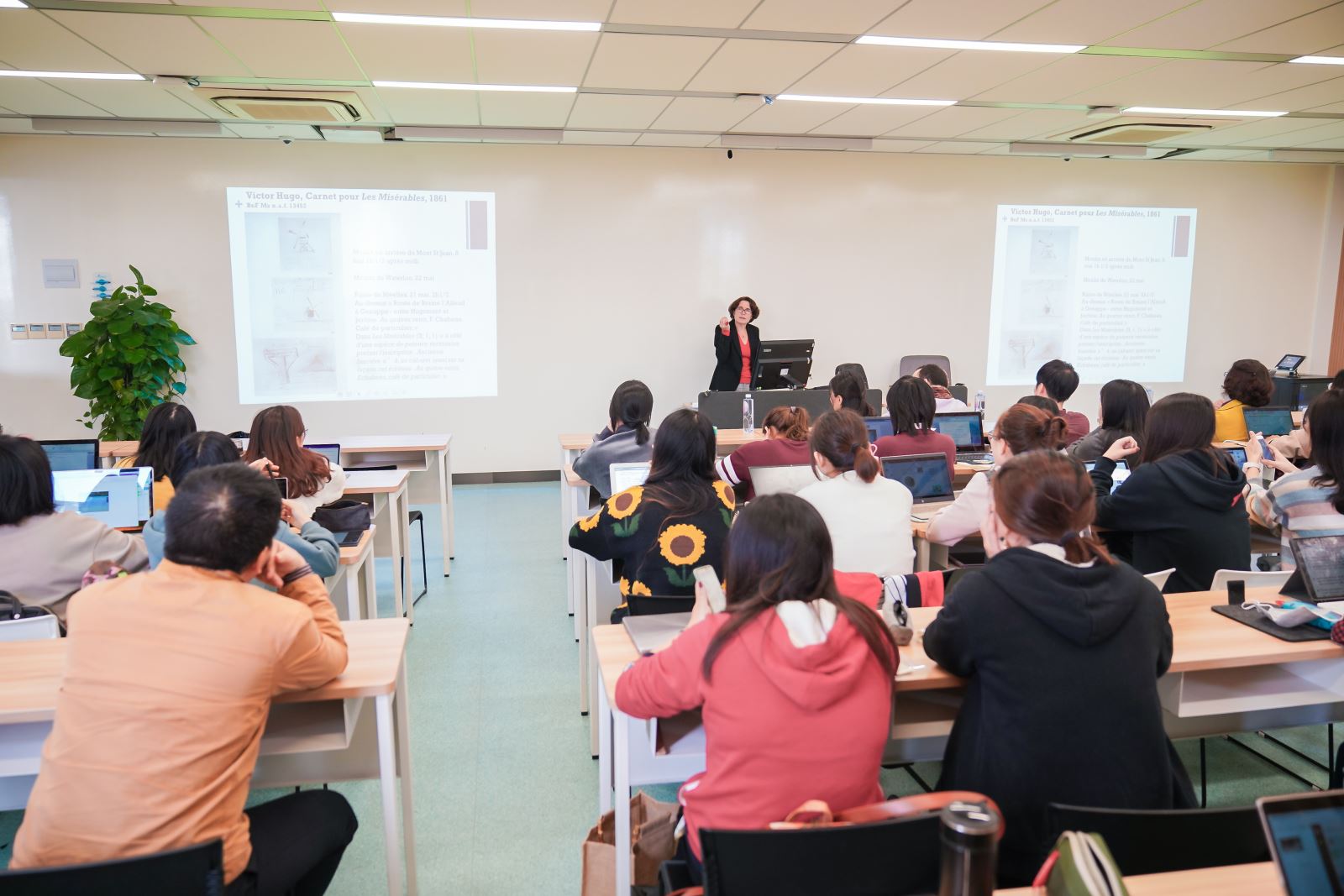 2019年10月29日上午,易倍平台,易倍(中国)一站式服务平台外文学院法文系成功举办了“天才的内心 ——雨果的绘画与文学”主题讲座,主讲人是法国格诺布尔·阿尔卑斯大学文学教授Delphine Gleizes女士。法文系主任袁莉老师主持了本场讲座,上海市明珠美术馆提供技术支持。