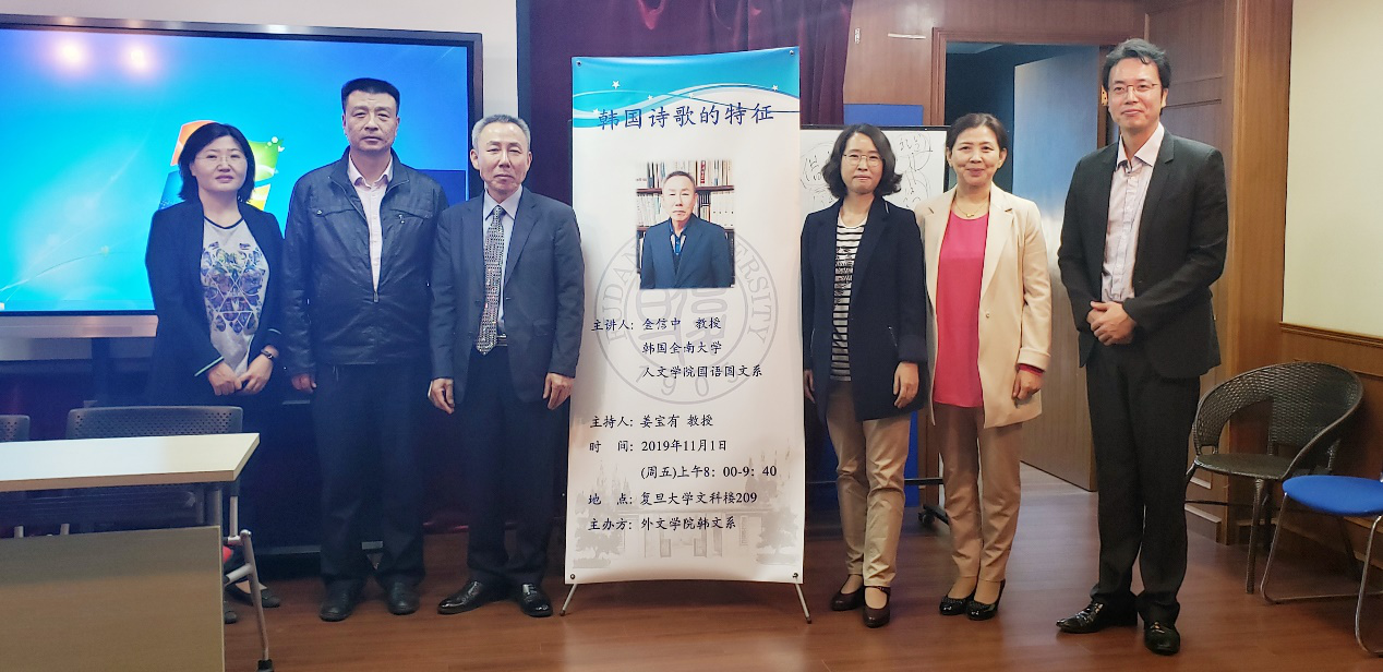 2019年11月1日,易倍平台,易倍(中国)一站式服务平台韩文系主办的“韩国诗歌的特点”讲座于文科楼209会议室举行。讲座分别由韩国全南大学国语国文系教授金信中和韩国全南大学国语教育系教授宋镇韩主讲。
