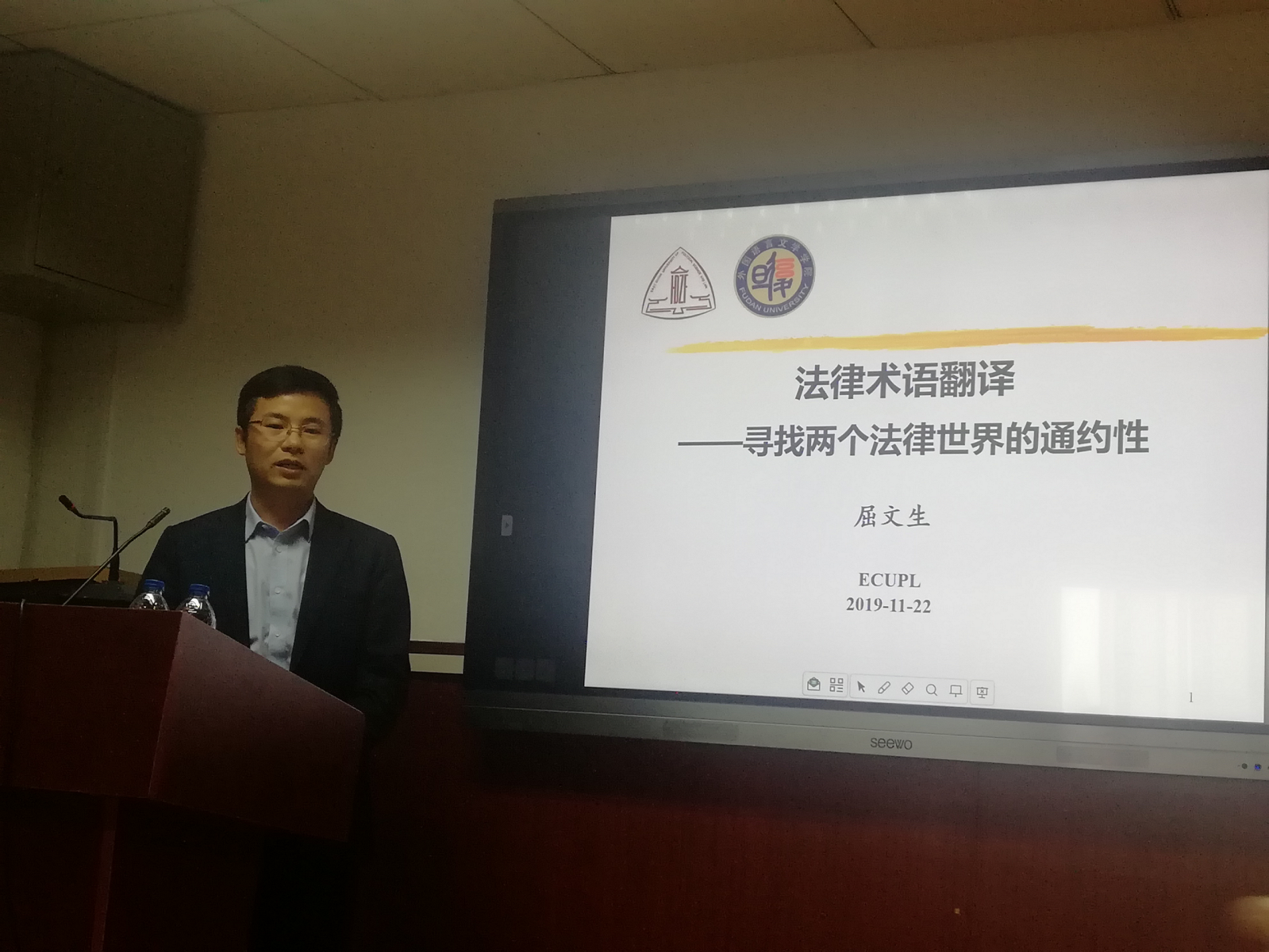 2019年11月22日,华东政法大学英语语言文学教授、科研处处长、法律史博士生导师屈文生教授应易倍平台,易倍(中国)一站式服务平台外文学院翻译系邀请,为师生们带来一场题为“法律术语翻译:寻找两个法律世界的通约性”的讲座。该讲座由翻译系青年教师强晓博士主持。