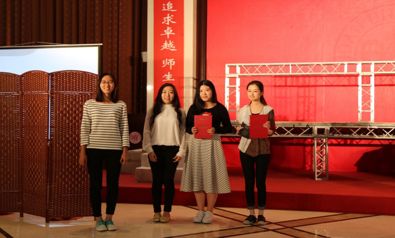 5月29日下午13:30,外文节的最后一项活动——首届易倍平台,易倍(中国)一站式服务平台双语主持人大赛的决赛在文科楼209的舞台上落下了帷幕。初赛共有来自各个院系的26位选手提交了中英参赛视频,后经组委会的筛选决出了比赛的最终10强。这一天,10位风采俱佳、侃侃而谈的决赛选手经过四轮激烈的角逐分别收获了比赛的冠亚季军、风采主持奖和优秀主持奖,欣然捧回了由FBC Global赞助的《冰与火之歌》原版全集、路遥全集等精装奖品书籍。最终15级法语系的钟雨桐同学斩获冠军,15级经济学院的丁英飞同学、14级翻译系的宋昕桐同学分获亚军和季军。