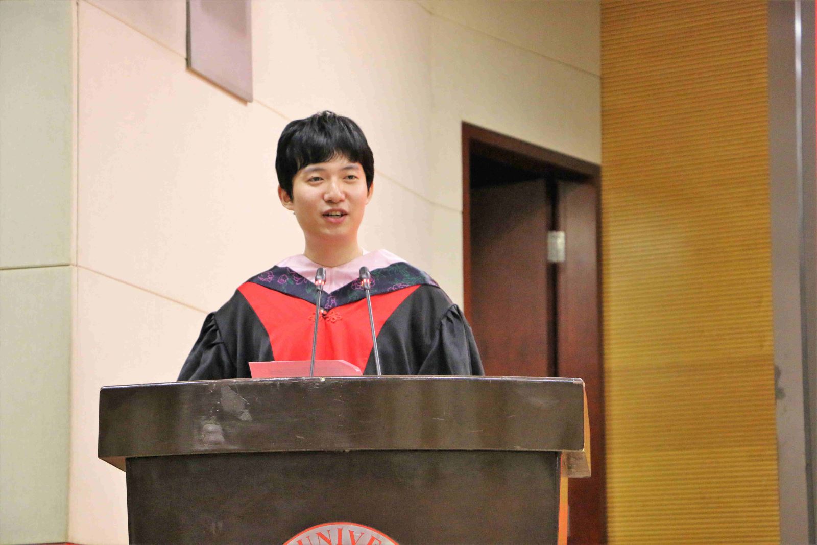 优秀本科毕业生代表、2018届翻译系本科生王子欣,优秀研究生毕业生代表、2018届英文系博士研究生缪蓬先后发言,表达了对学院和师长的感恩和对美好未来的憧憬。