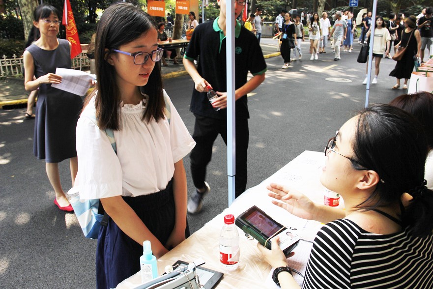 市教委领导、学校领导、书院领导和学院领导先后来到迎新摊位,看望新生和家长,慰问迎新工作人员。