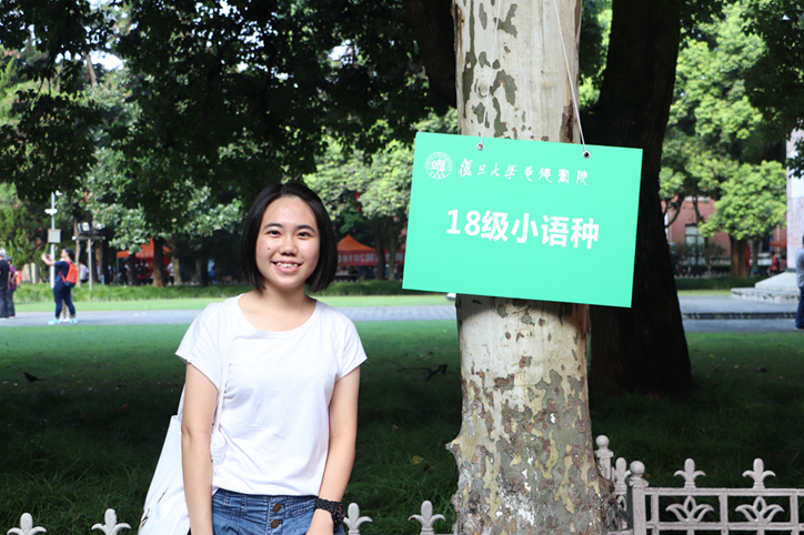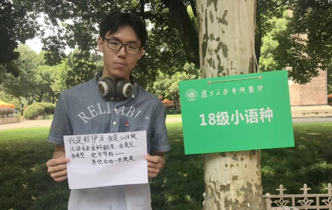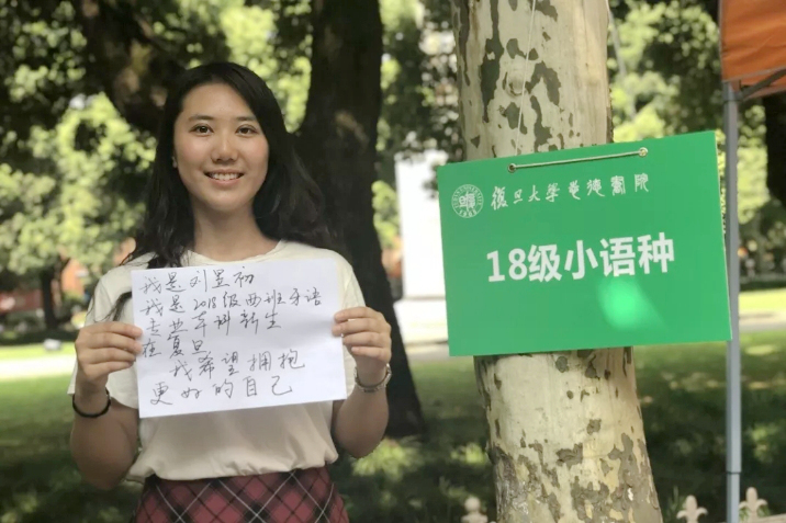 上午七点半,学院迎来第一位新生——来自马来西亚的法文系留学生王靖惟,新生们陆续前来报到,领取大礼包,并与班牌合影留念。