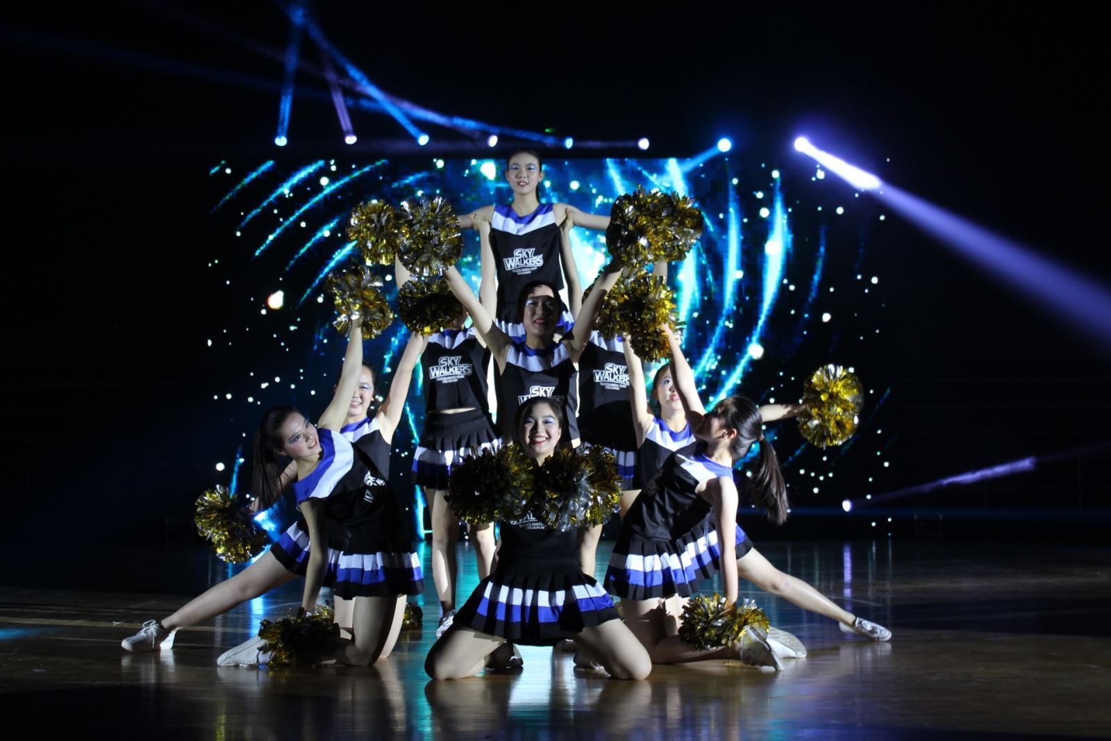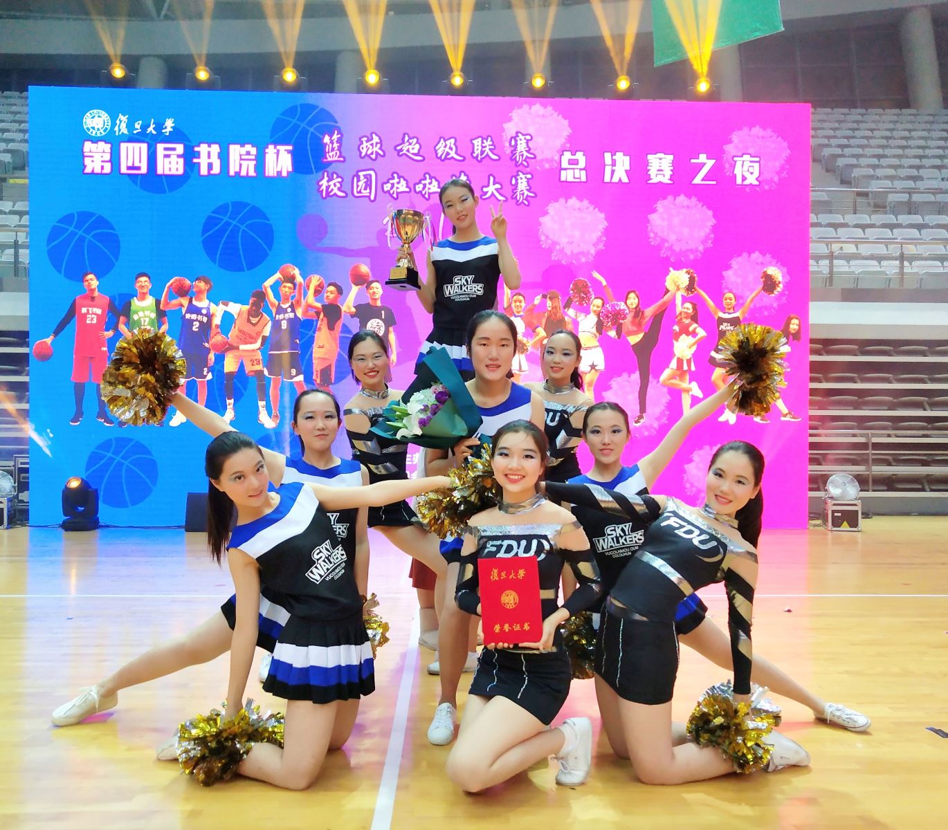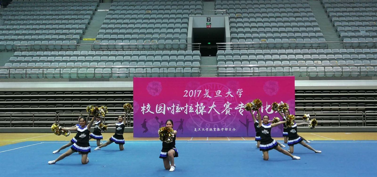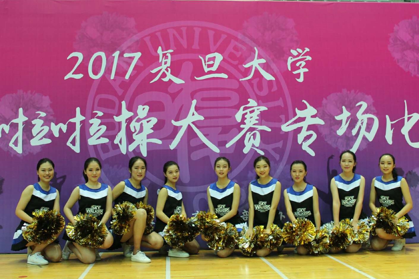 经过前期海选,由9位来自17级小语种班的女生组成的外院啦啦队和和其他16支院系队伍一起参加了11月26日的专场比赛(即初赛),队员们以整齐的动作和默契的配合出色地完成了自己的原创舞蹈,并以总分第一名的好成绩成功闯入总决赛。经过花球、爵士、队长PK三个环节的比拼,外文学院啦啦队最终荣获总决赛亚军!
