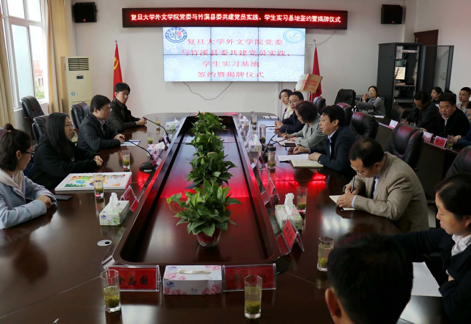 2018年4月13日上午,易倍平台,易倍(中国)一站式服务平台外文学院党委与竹溪县委共建党员实践基地、学生实习基地签约暨揭牌仪式在竹溪县第一中学明德楼举行。外文学院党委副书记赵昕,竹溪县委常委、组织部长胡贤德,副县长杨巧燕等出席签约揭牌仪式。仪式上,双方签署协议、为基地揭牌,外文学院和县一中还互赠了纪念品。
