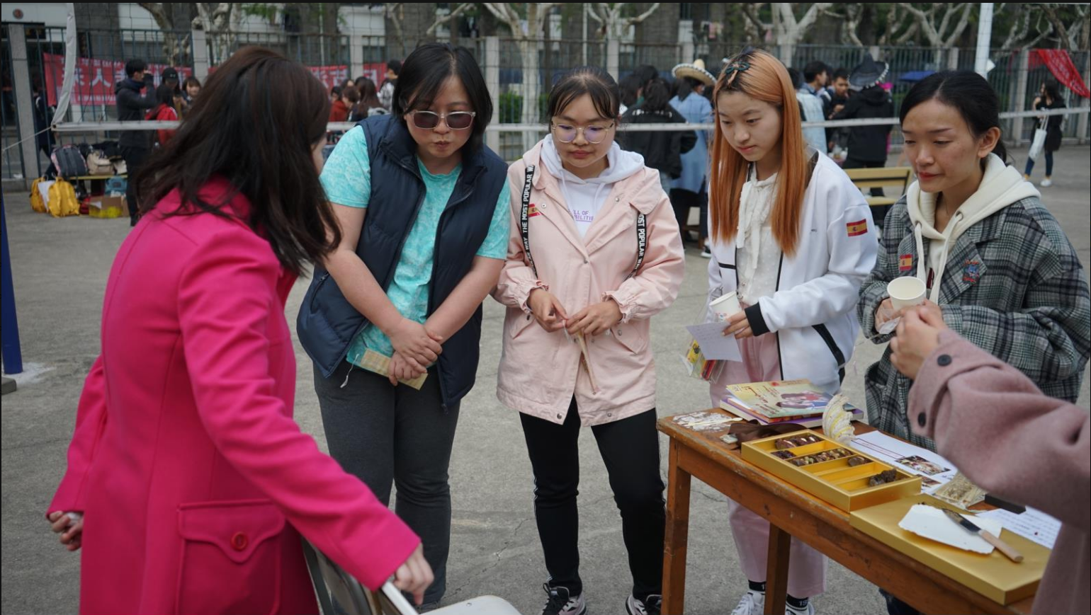 法文系的摊位前反复播放着浪漫的法国音乐和歌剧,引得不少同学驻足,现场的各类游戏,包括取法语名,法国文化知识竞答,特色名词你说我猜等都让同学们亲身体验到了法语的风采。