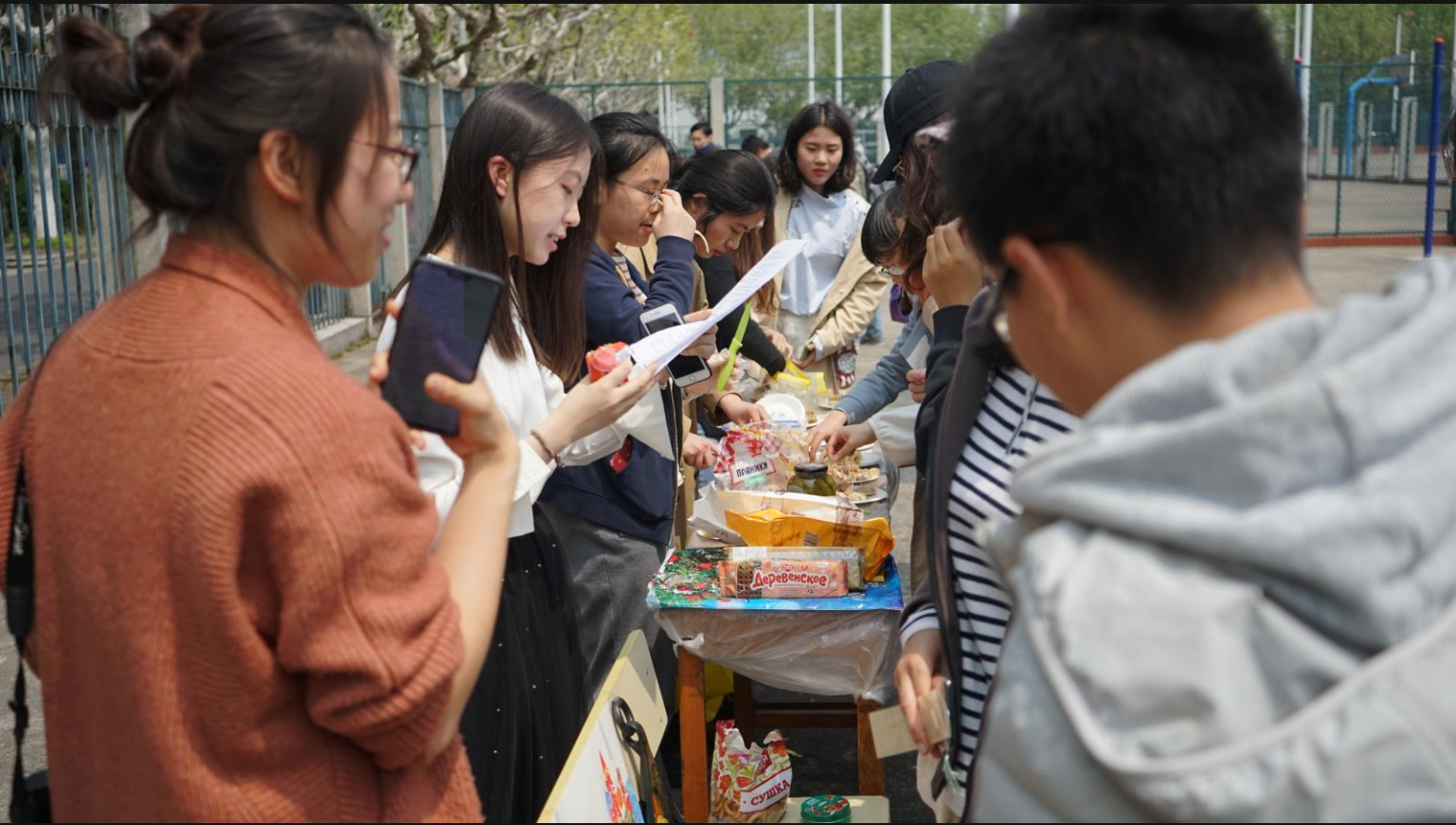 俄文系的活动内容十分丰富多彩,现场不仅有传统的美食品尝,文化知识竞答和猜单词游戏,更有“彩蛋接力赛”和“摸黑找彩蛋”的趣味运动和俄罗斯民俗服装展示,帮助同学们更好的了解俄罗斯文化。