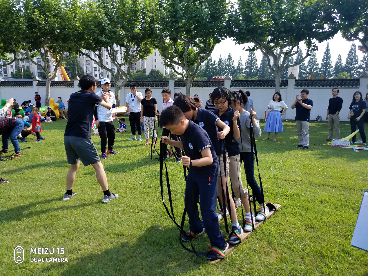 5月31日下午,相辉堂前草坪上彩旗飘扬,人声喧嚷,热闹异常,往日的寂静与安详一时失去踪影,欢呼雀跃的孩子们奔跑嬉戏,在教练指导下的一组组家庭子亲同乐,竞技助娱,初夏的艳阳下生机勃勃的绿荫变成了一片欢乐的海洋!