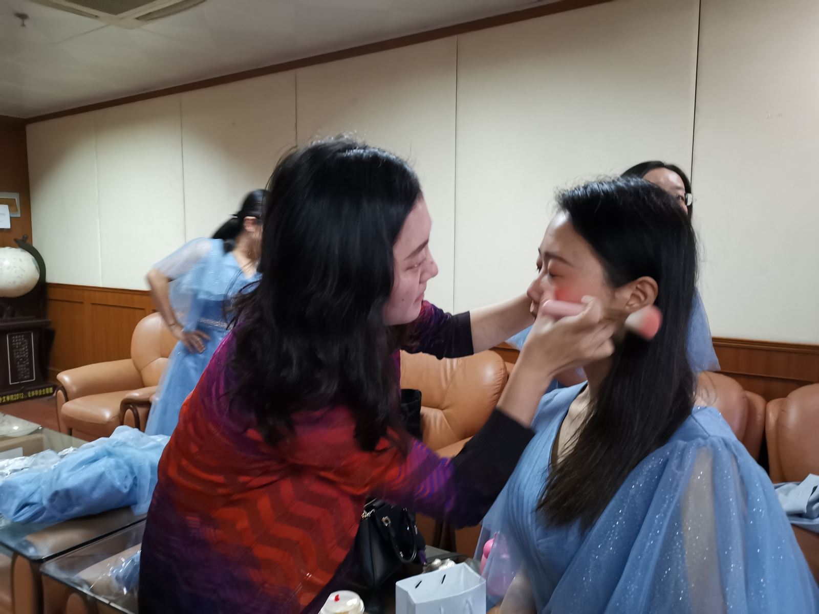 学院党委高度重视合唱和排练工作,党委书记罗英华老师带头参加排练,院长高永伟老师到排练现场慰问大家;党委副书记、工会主席曾建彬老师积极参加排练,并和工会副主席刘亦春、白冰老师一起做好合唱的组织工作;分团委书记贾怡锐和学工办王亚鹏老师、茅盾老师,辅导员班乐君、包妍佳等一起,尽心尽力做好后勤保障服务工作;指导老师兼指挥章方思琪经验丰富、耐心十足,从识谱、发声到每句每段、每个人每个声部,一一教学面面兼顾,带领外院师生在短时间内取得了迅速的进步,并和大家一起献上完美的演出。学院工会、分团委学生会还为参加合唱排练的师生们准备了小蛋糕、咖啡、奶茶等暖心又暖胃的慰问品。