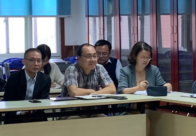 范烨做了《浅谈大学英语教学中的“三全育人”》的汇报,她提出,要提高育德意识的紧迫性,把大学英语部的课程纳入“三全育人”全过程;在课程建设中,要发挥已有课程思政的示范作用,新建多建建设好课程思政的系列课程;在教材选材内容上,要体现新时代新思想的育德内容,发挥好大英部编撰教材在全国的影响力,扩大育人效果的覆盖面;在师资培训上加强督导,在日常教学中落实德育育人要求。