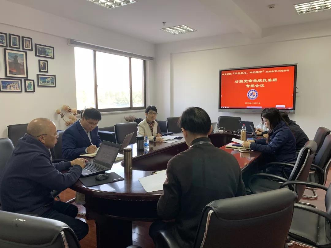 外文学院党委高度重视主题教育活动,根据中央印发的《关于在“不忘初心、牢记使命”主题教育中对照党章党规找差距的工作方案》要求,各位班子成员认真学习《中国共产党党内重要法规汇编》,逐段逐句重点学习了《关于新形势下党内政治生活的若干准则》和《中国共产党纪律处分条例》,对照党章、《准则》、《条例》有关规定,认真查找自身存在的不足,逐一列出问题,并事先撰写了对照党章党规找差距专题会议发言提纲。