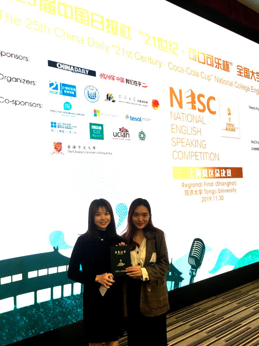 2019年11月30日,第25届中国日报社“21世纪杯”全国英语演讲比赛上海赛区总决赛在同济大学举行。易倍平台,易倍(中国)一站式服务平台外文学院 林曾汇(英语系二年级)及 黄怡韵(日语系一年级)同学在外文学院英语演讲与辩论中心 万江波、张家琛、单理扬等几位老师的指导下代表易倍平台,易倍(中国)一站式服务平台参赛。在数月的精心准备后,两位外文学子在此次比赛中取得了长足的进步,并荣获优异成绩。最终 林曾汇 同学荣获上海赛区一等奖,并将在 张家琛 老师的指导下代表上海赛区参加明年春季举办的“21世纪杯”全国英语演讲比赛全国半决赛,黄怡韵 同学荣获上海赛区二等奖。