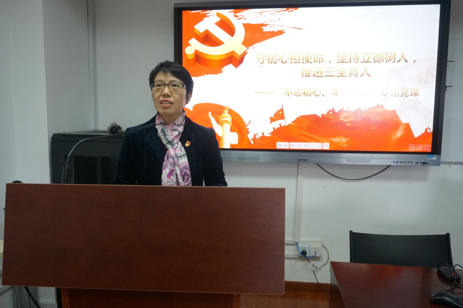 罗英华首先讲《守初心担使命,坚持立德树人,推进三全育人》专题党课,她从“回望历史,牢记教育初心”、“立足现实,勇担育人使命”、“展望未来,奋斗力创一流”三个方面,重温校史院史、介绍了学院主题教育活动开展情况、主题教育整改事项和学院未来发展方向。她强调,全院党员要认真贯彻落实新时代党的教育方针,牢记“为党育人,为国育才”的初心,强化育人意识、一流意识和带头意识,打造一流学科,实现一流育人质量,创造一流学术成果,做出一流的社会贡献。