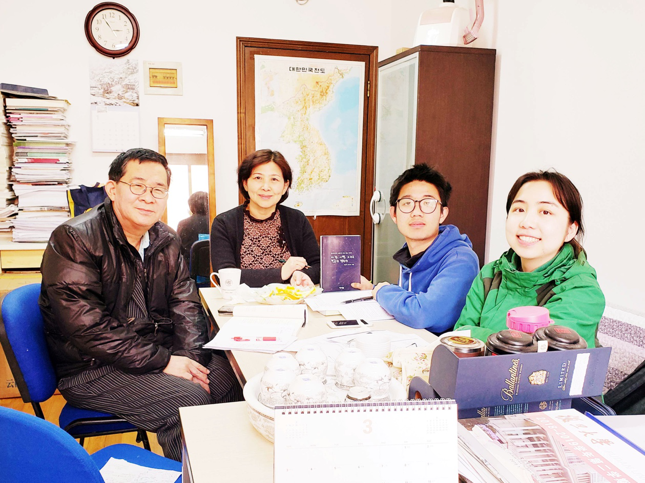 小说原作者李英白教授与韩文系师生(从左到右依次为:李英白,黄贤玉,金志伟,赵越)