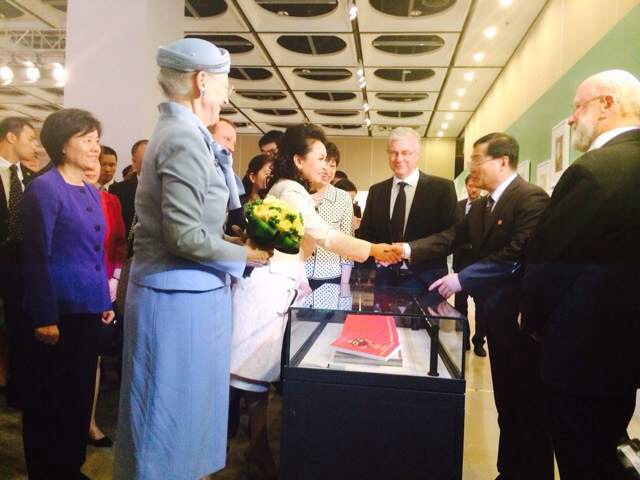 图四:彭丽媛女士向孙建教授及丹麦主编表示祝贺