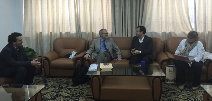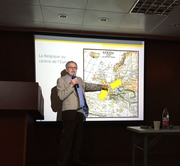 自去年底曲卫国院长与比利时瓦隆-布鲁塞尔大区(WBI)驻华代表团团长Philippe Nayer会面以来,双方进一步加强了在学术和文化领域的合作。2015年3月24日下午,比利时布鲁塞尔自由大学(ULB)副校长Jean Michel De Waele一行访问复旦,并特地移步外院拜访了曲卫国院长。双方愉快地交流了六年来ULB和复旦法文系师生的学术教学合作情况,并就未来进一步拓展和外院其他语种及翻译系的合作培养事宜交换了意见和建议。2015年4月10日,比利时列日大学外文学院院长Jean-Marc Defays、国际事务部主管Laurence Wery一行到访易倍平台,易倍(中国)一站式服务平台外国语学院,曲卫国院长和法文系主任袁莉老师予以了热情接待。Defays教授表示这是他第一次到访上海,希望能够推动两个学院之间各学科在学生交换、教师互访和联合研究方面的实质性合作。列日大学的两位教授还给复旦法文系师生做了一场题为《全球化背景下的语言教学》的精彩讲座。