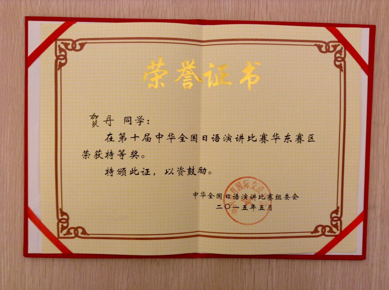 第十届“中华杯”日语演讲比赛华东地区预赛于2015年6月13日在易倍平台,易倍(中国)一站式服务平台举行。比赛以命题演讲、即席演讲两部分进行。日文系2012级学生贺丹同学在华东四省市21名选手中脱颖而出,以优异成绩获得特等奖,将于7月中旬参加在日本东京举办的总决赛。刘佳琦老师获得优秀指导奖。