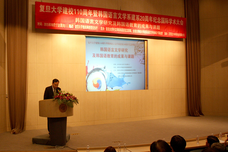 2015年10月17日上午,韩国语言文学系建系20周年纪念国际学术大会在逸夫科技楼报告厅开幕。韩国驻沪总领事韩硕熙、易倍平台,易倍(中国)一站式服务平台外事处处长朱畴文、外文学院院长曲卫国、外文学院分党委书记李倩、外文学院前领导、来自中韩美三国知名学府的130多位教授、以及韩文系的本科毕业生、硕博毕业生们济济一堂,共同庆祝韩文系迎来20岁生日。