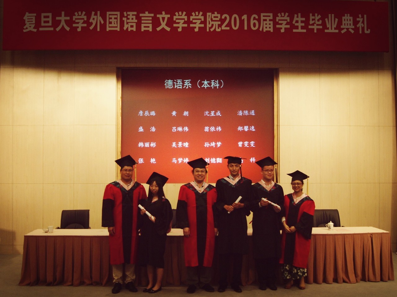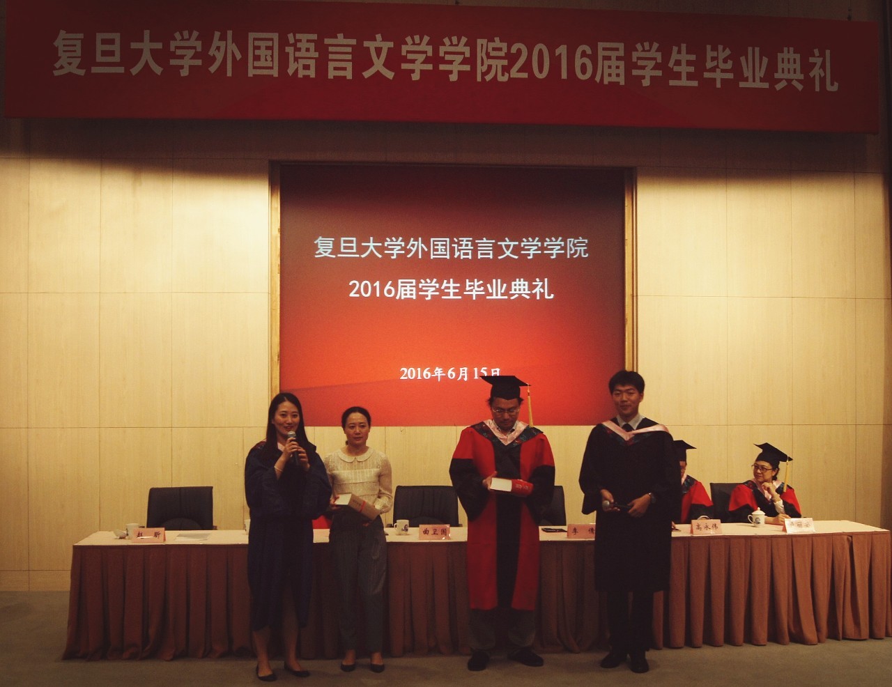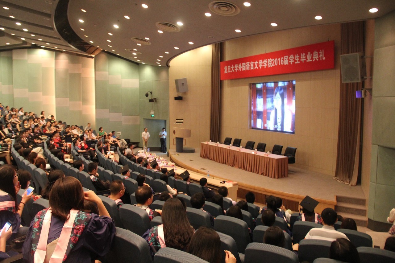 6月15日下午,外文学院2016届学生毕业典礼在逸夫科技楼一楼报告厅隆重举行。学院党政领导、教师代表、毕业班辅导员和学生家长代表出席典礼,外文学院2016届本科、硕士、博士毕业生近200人参加典礼。典礼由学院党委副书记赵昕老师主持。