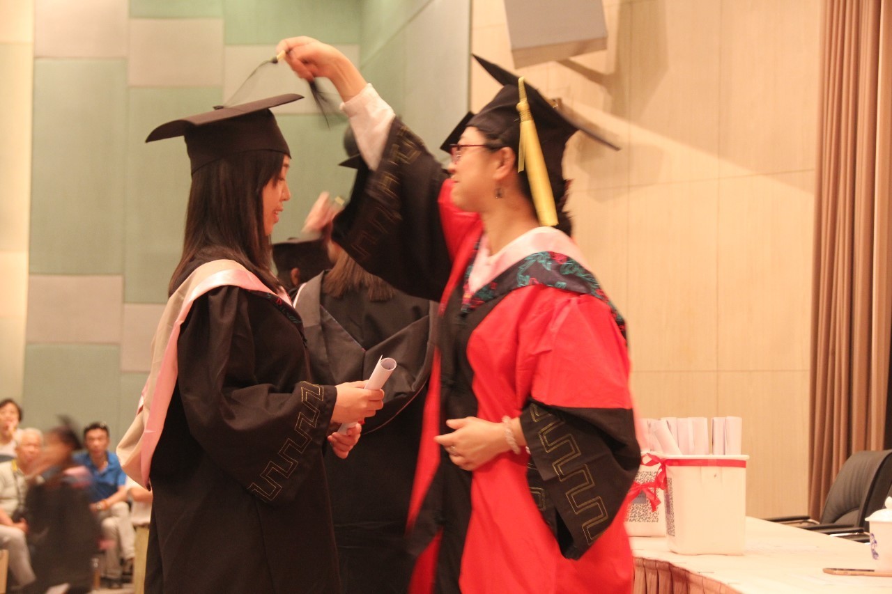 接着,隆重的学位授予仪式正式开始。院长曲卫国老师、副院长高永伟老师、副院长卢丽安老师为全体毕业生拨穗并授予毕业纪念证书。学位帽上的流苏从右拨到左,代表学生已经顺利圆满地完成学业,即将走出校门,奔向世界各地,实践自己的理想。
