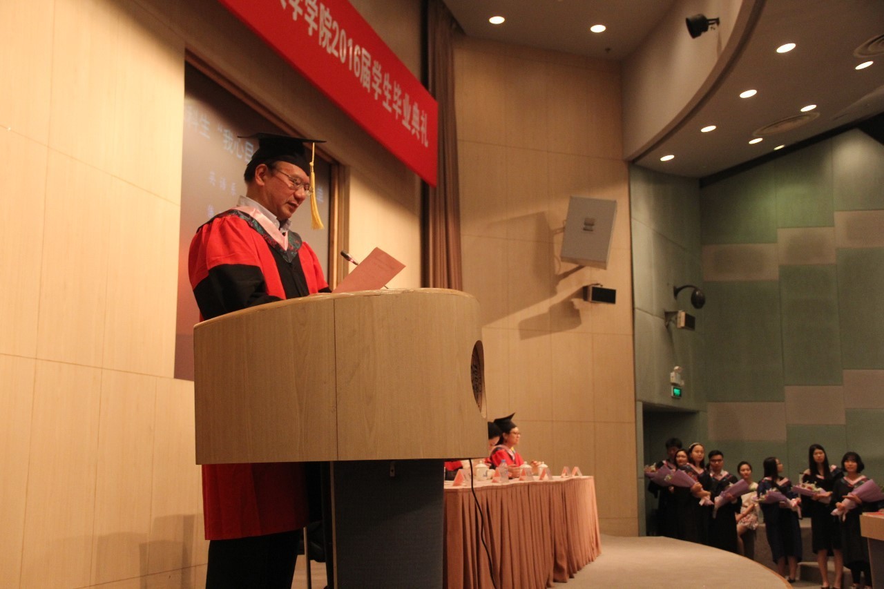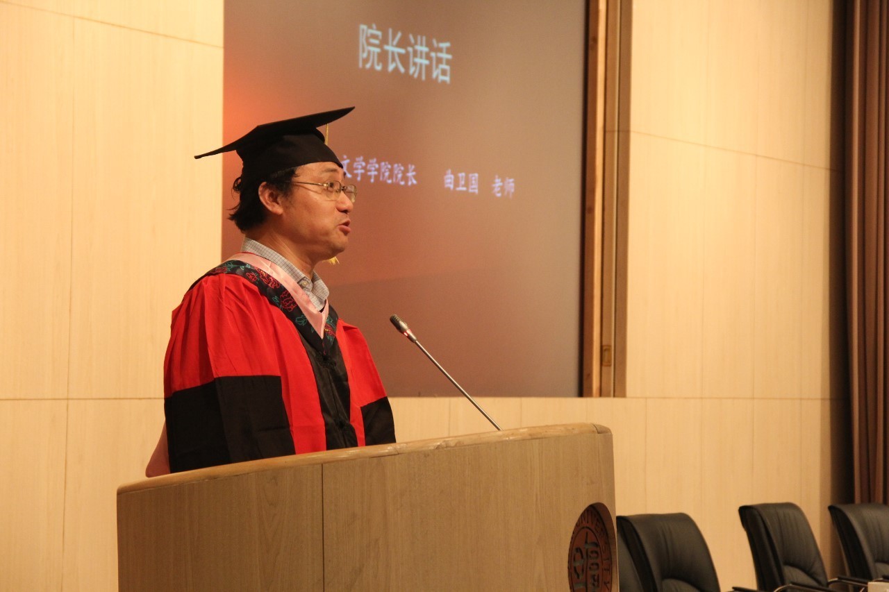 最后,在愉快而热烈的气氛中,外文学院院长曲卫国老师深情寄语本届毕业生。曲院长希望全体毕业生能自己定义成功和幸福,在未来不断进取,发扬外文学院的精神,在人生的新起点扬帆远航。