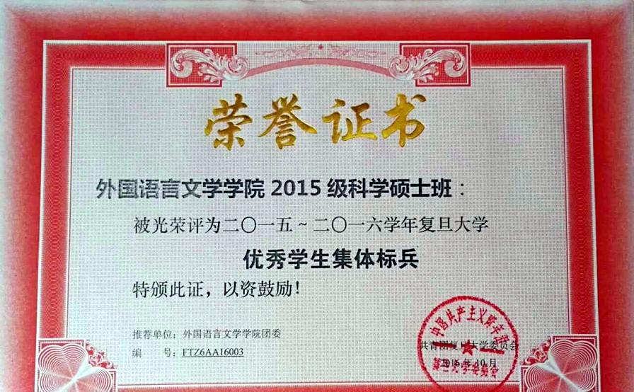 2016年11月21日,由夏佩瑶和董益代表2015级外文学院科学硕士班登上逸夫科技楼的演讲台,还有早早就位&万分给力的亲友团拉拉队~经过激动人心的展示和答辩环节, 2015级外文科硕班当选了“2015-2016学年易倍平台,易倍(中国)一站式服务平台优秀学生集体标兵”。