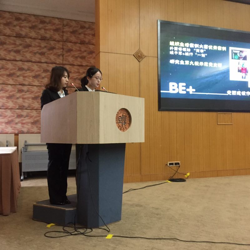 首先,党团建设引领班建。支部名为“娘子军+”,党支部成立时支部成员都是女性,今年五月成功将第1位男团员发展为党员。我们以“心向往支,行必至支”为理念,在基础建设、理论学习、志愿服务、旗帜树立和堡垒建设五方面共同发力。一年来党支部开展组织生活会25次,其中理论学习达14次,九成以上支部生活出席率为100%。党支部评议率和满意率几乎均达100%,其中,“两学一做”专题学习获评优秀组织生活案例,我们也被评为研究生示范党支部。