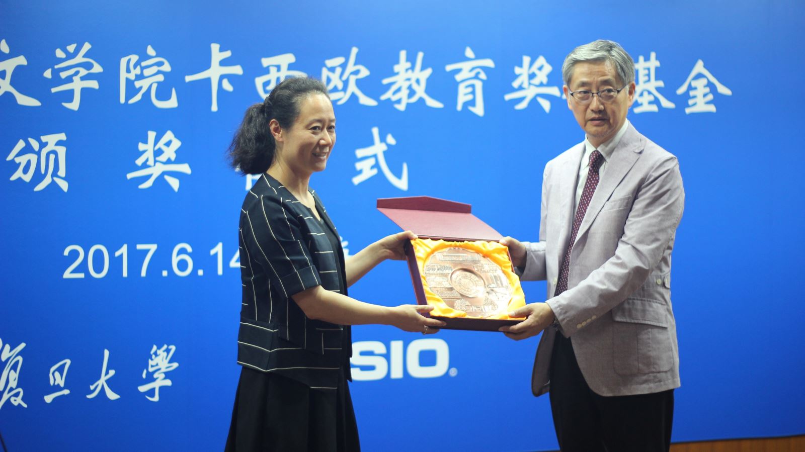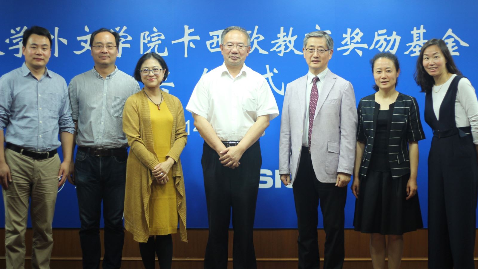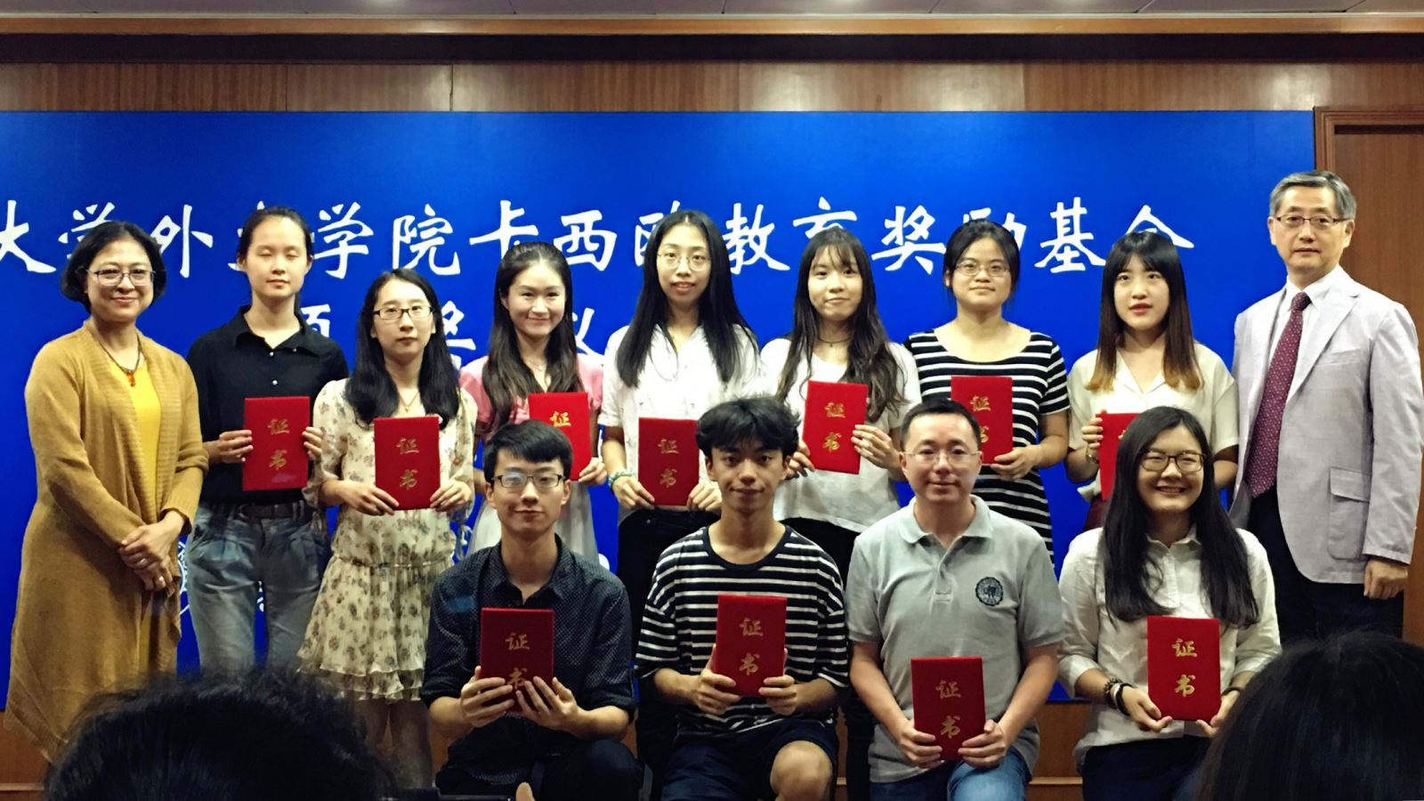 2017年6月14日下午,外文学院在文科楼209室举行2016年度卡西欧奖教学金颁奖仪式。出席仪式的有卡西欧(中国)贸易有限公司总经理金田公一、总经理助理王璐瑾、电子教育营业部部长路银霞、副部长唐金良、担当唐峥嵘,外文学院党委书记李倩、副院长卢丽安、副院长刘炜、学术委员会主席魏育青,以及外文学院获奖师生。颁奖仪式由外文学院副院长刘炜主持。