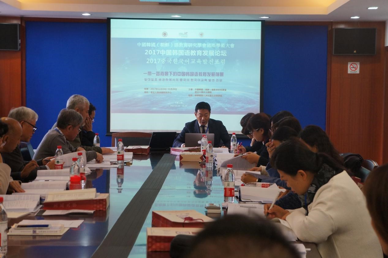本次论坛的中心议题为“一带一路背景下的中国韩国语教育发展前景”。“一带一路”是中国在自身快速崛起的历史条件下,为谋求与亚欧非各国的和平发展,在国际舞台上发挥更大影响力而提出的国家重大战略。在“一带一路”的战略背景下,语言作为一种重要的战略资源被摆上关键位置,我国外语学界提出了“国家外语能力”的概念,强调外语教育规划和设计必须服务于国家发展和世界各国的和平相处和交流。“一带一路”倡议为外语学科的大发展提供了宝贵的历史契机和有利条件,同时也对外语人才的培养和外语学科的建设提出了更新更高的要求。面对新时代的机遇和挑战,本次论坛对中国的韩国语教育发展现状和未来方向进行了探讨,提出了多元化的解决方案。