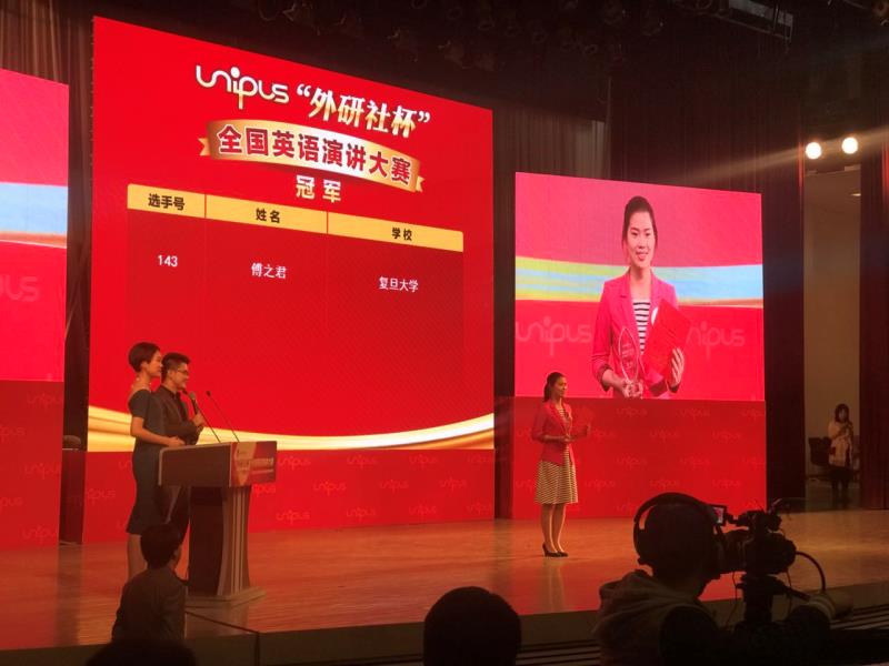 傅之君此次获得“外研社杯”全国英语演讲大赛全国总冠军,是继2008年施宇鹏夺得CCTV杯全国英语演讲大赛(外研社杯前身)全国总冠军之后,我校选手再次问鼎此项赛事的最高奖项。“外研社杯” 全国英语演讲大赛是我国规模最大、级别最高、竞争最激烈的全国英语演讲赛事,今年的报名首次同时面向在中国留学的外国选手,来自英、美、加拿大等英语母语的选手也参加了大赛,我校选手在整体上获得如此优异成绩,实属不易。