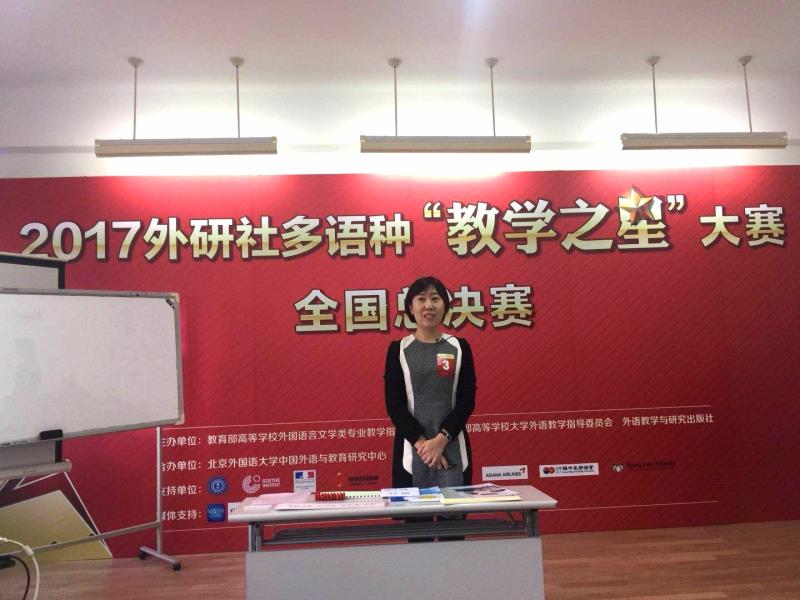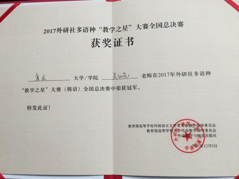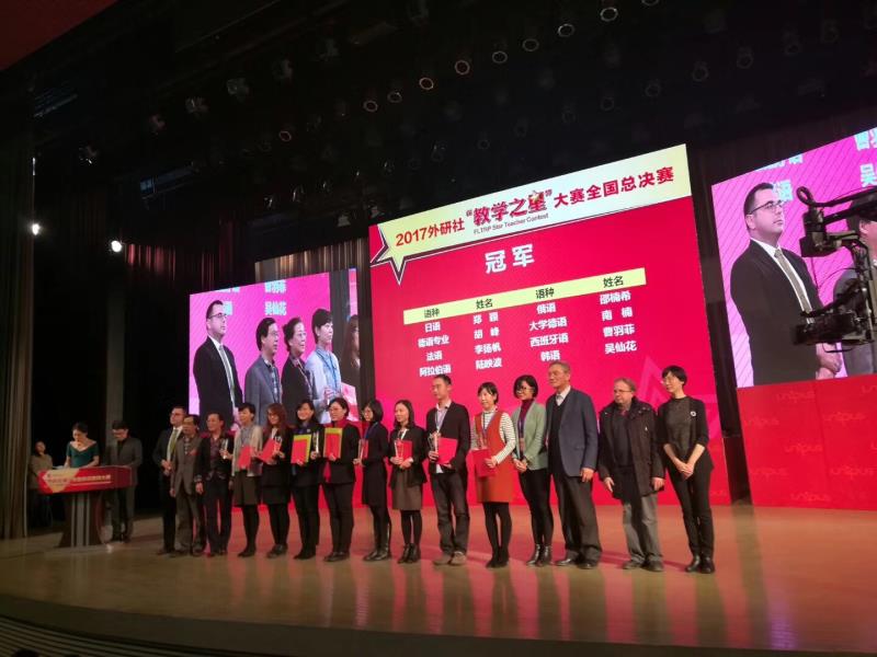 12月8日,2017外研社多语种“教学之星”大赛全国总决赛在外研社国际会议中心落幕,我院韩文系吴仙花老师在韩语组比赛中荣获冠军。本次大赛涵盖日语、俄语、德语、法语、西班牙语、阿拉伯语和韩语七个语种。