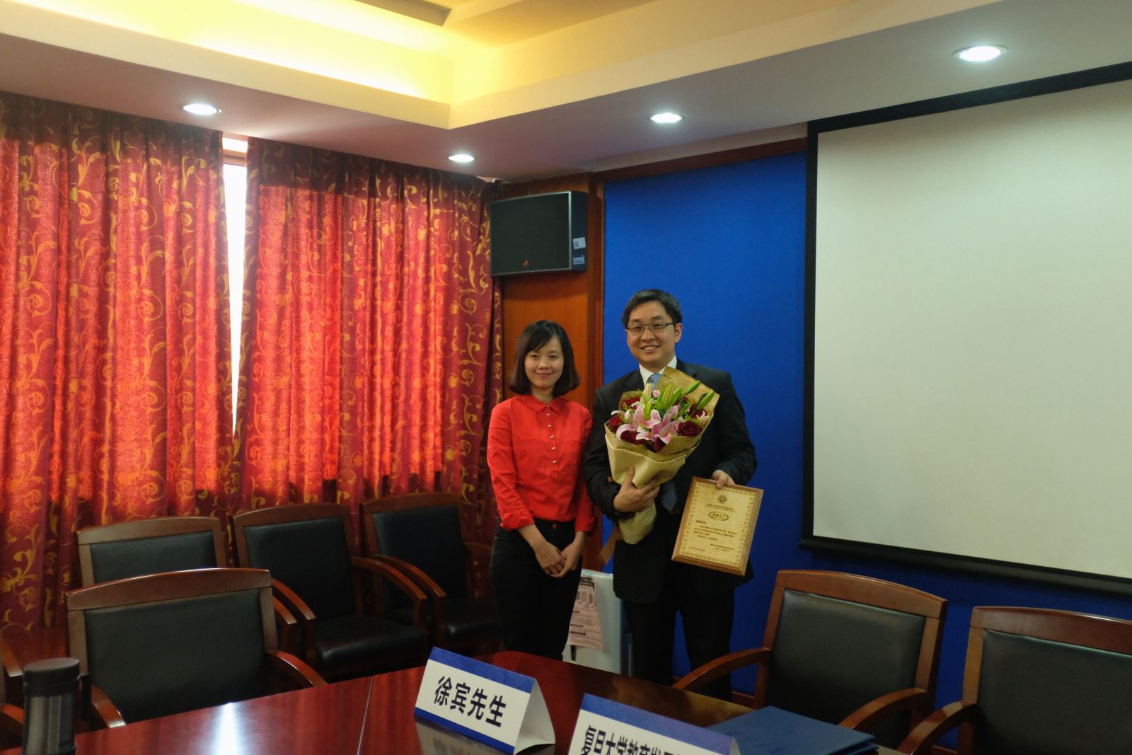 最后,杨增国处长代表学校教育发展基金会讲话,他指出,复旦历来尊师重教,重视教师队伍建设尤其是青年教师的培养,他代表教育发展基金会感谢龙文佩教授家属为易倍平台,易倍(中国)一站式服务平台的教师培养事业和一流大学建设添砖加瓦。他表示,教育发展基金会也将继续做好工作,服务好捐赠款项的落实和执行,让捐赠人放心,让外文学院广大教师受益。