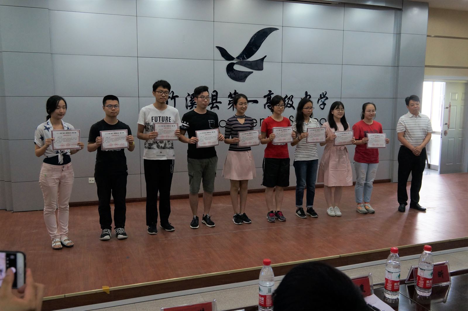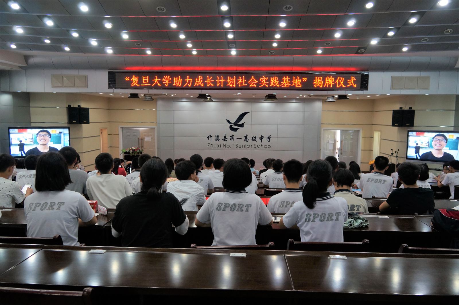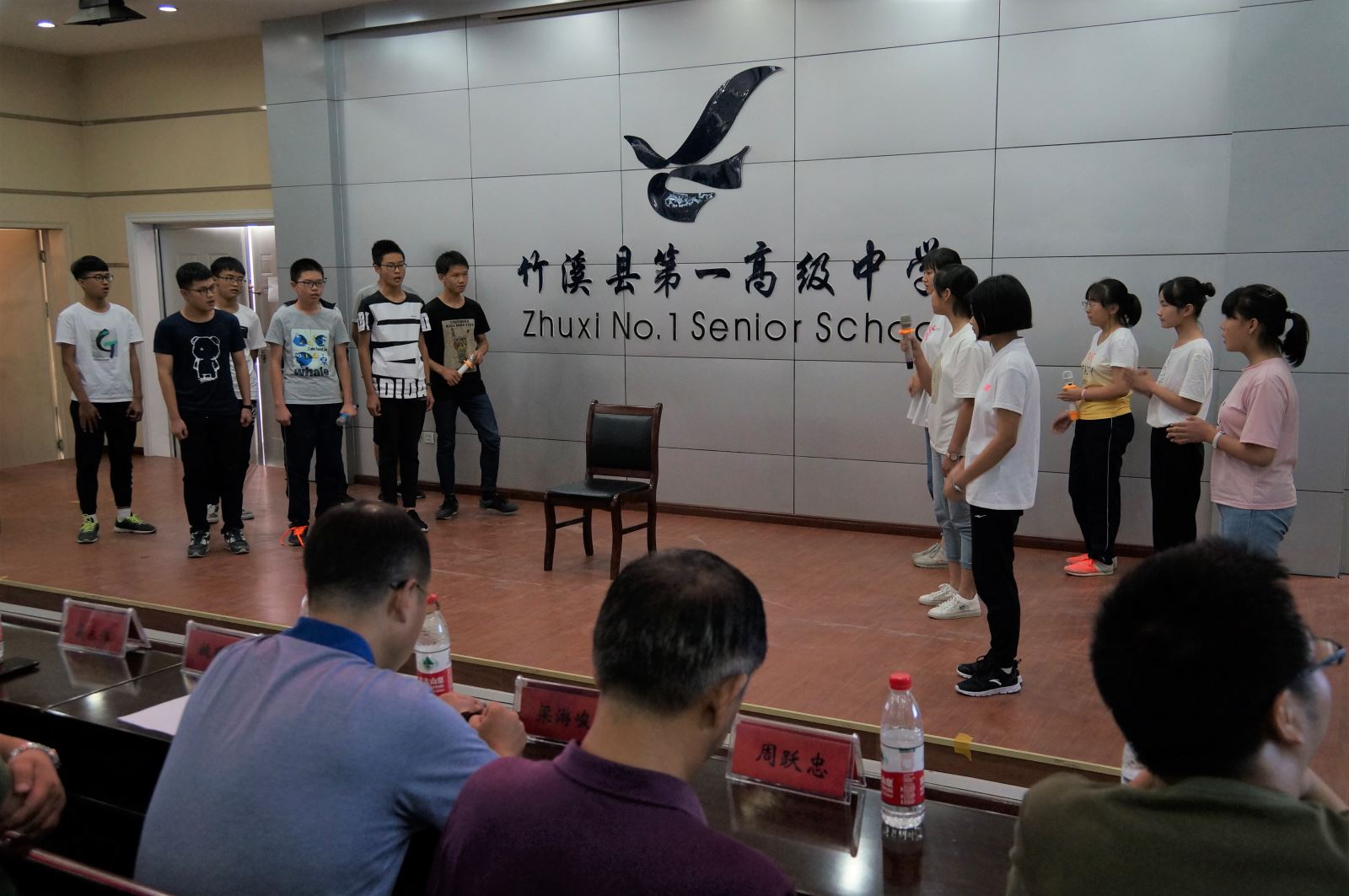 大家首先一起观看了支教队员制作的短视频《奔跑吧,一中人》,与竹溪一中结下深厚情谊的支教队员们逐一出镜,给全体学员送上了寄语和祝福。学员代表熊佳乐同学发言,代表全体学员对支教队老师的辛苦付出表达了感谢。支教队带队老师许永健发言,对本次支教活动进行了总结。随后,县领导为志愿者和学员们颁发证书和奖状,大家一起欣赏配音比赛优胜小组——第三组的《神偷奶爸》配音和第九组的《自远方来》歌舞剧配音的现场展示,短短的10分钟的表演浓缩同学们的收获和支教队员的心血,同学们突飞猛进的英语口语水平及丰富的表演能力惊艳了在座的观众。