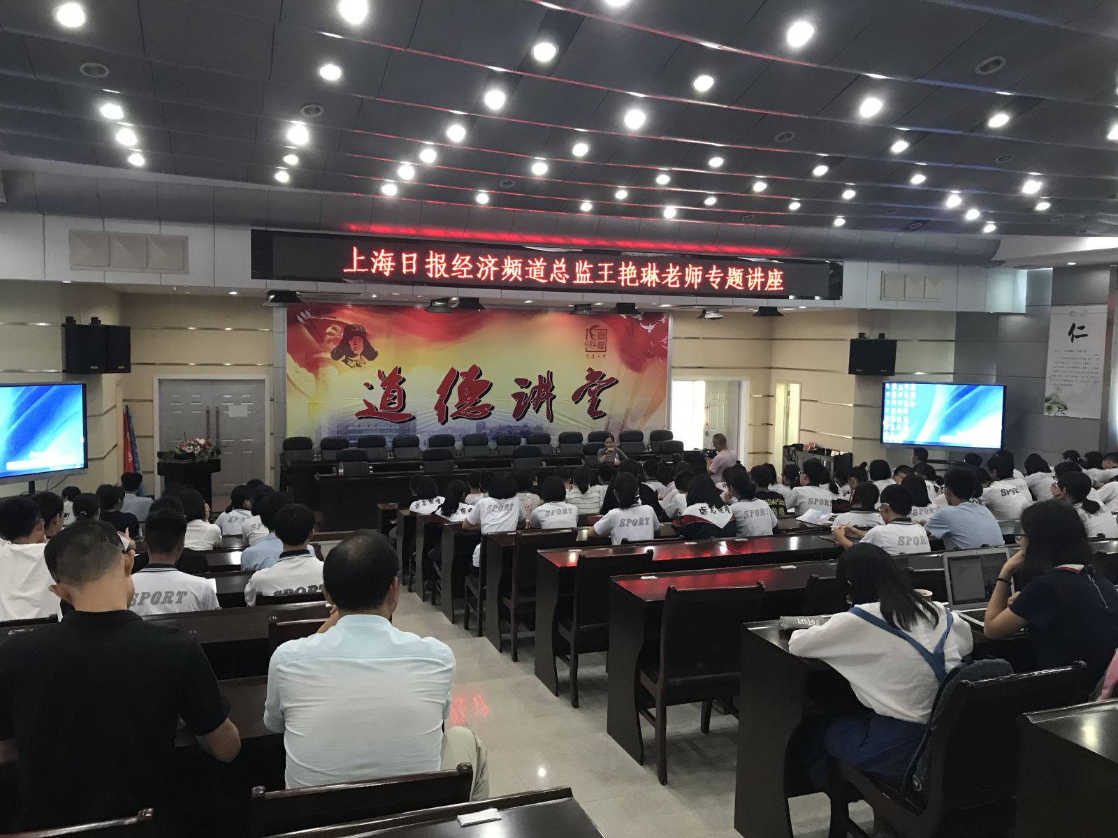 王艳琳老师结合自己的学习经历,向大家分享了自己的学习心得。她以自己高中时代学习的经验为例,告诉同学们:“成绩优秀是一种能力,努力学习更是一种能力。”要相信努力学习会有成果;建议大家要借助一定的方法“聪明地学习”,通过预习、上课认真听讲、复习,掌握好的学习方法,达到事半功倍的效果。对于高考之后的未来生活,她和大家分享了自己的体悟:每个人应该拥有属于自己的、超越性的目标。立足当下,放眼未来。无论是英语学习还是记者工作,最重要的都是保持求知欲与好奇心。对世界充满赞叹和好奇,永远不失去那份最初的新鲜感和热情。最后,王老师用汪国真的《我喜欢出发》结束了精彩的讲座,并以“我喜欢出发,愿你也喜欢”与同学们共勉。
